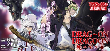Drag-On Dragoon Shi ni Itaru Aka, translated as Drakengard: The Red Unto Death, or Drakengard: Fatal Crimson, is the latest manga serialization of the Drakengard series. The author is Emi Nagashima who is credited under her alias, Jun Eishima. She previously authored the novelized version of Drakengard and conceived the backstories found in its databook. ZET does the illustrations. It is being created to celebrate the ten year anniversary of the first game.