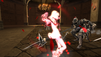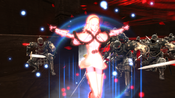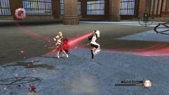 Zero encounters One in the outskirts of Cathedral City, engaging her in close combat. During battle, One regales Zero with a familiar concept: The world doesn't need Intoners. Both acknowledge a similar goal in destroying their sisters, ultimately destroying themselves and thus saving the world. However, One fails to convince Zero of her convictions despite the latter having previously acknowledged the former's ability at maintaining her awareness independent of the flower's intentions. One tells Zero that she'll never forgive her for murdering her sisters and she and Zero are forced into a dead-lock after One produces a magic barrier. Octa summons Armisael to constrain One but is transformed back into his original form too soon, rendering his assistance obsolete.