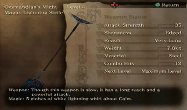 Ozymandias's Might (皇帝の槍 Kōtei no Yari, "Emperor's Spear") is a weapon in Drakengard and Drakengard 2.