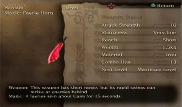 - Faerie Horn: summons faeries to spin around Caim for 10 seconds, inflicting huge amounts of damage on anything it touches.